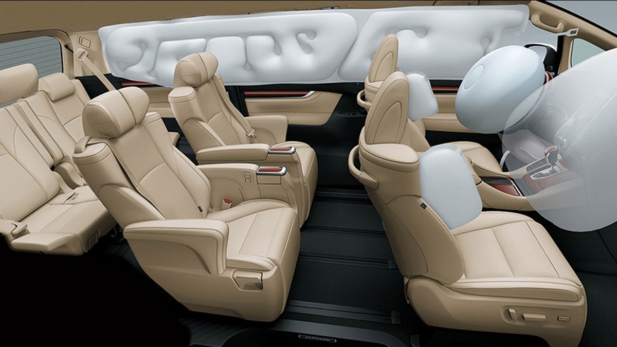 Toyota Alphard Luxury được trang bị một số công nghệ an toàn và hỗ trợ lái như: 7 túi khí an toàn, camera lùi và cảm biến hỗ trợ đổ xe, phanh ABS, cân bằng điện tử, hệ thống cảnh báo điểm mù/cảnh báo phương tiện cắt ngang phía sau…