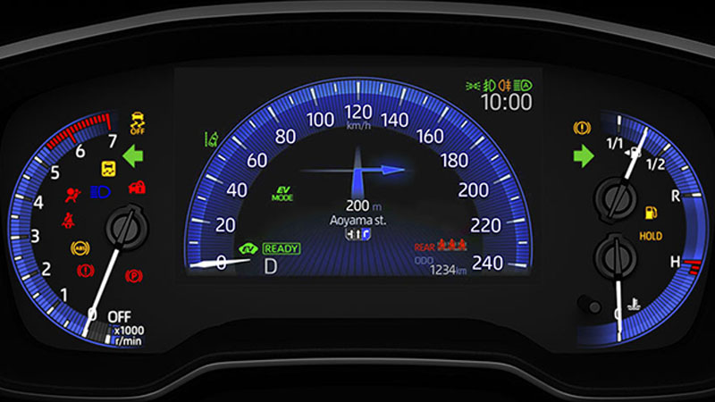 Màn hình đa thông tin 7” mang đến khả năng hiển thị rõ nét & đồng hồ tốc độ có thể chuyển từ loại kim chỉ sang loại hiển thị số
