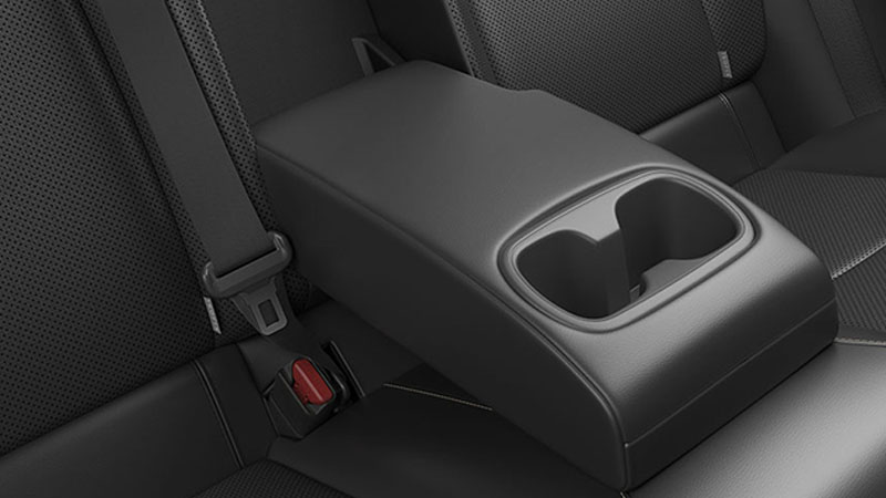 Hàng ghế sau được trang bị tựa tay mang đến sự thoải mái cho hành khách phía sau, đồng thời trên tựa tay còn trang bị khay đựng cốc/chai nước đầy tiện ích.