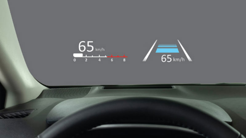 Hiển thị sắc nét thông tin vận hành, tin báo cần thiết ngay trên kính lái, đúng tầm mắt quan sát của người lái (được trang bị trên phiên bản HEV).