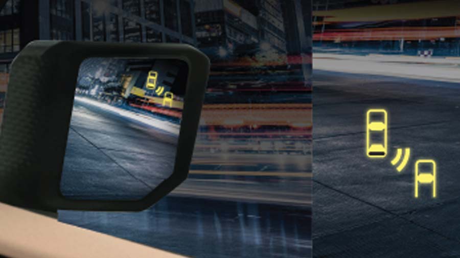Hệ thống đưa ra cảnh báo trên gương chiếu hậu ngoài xe (đèn BSM), màn hình đa thông tin, âm thanh cảnh báo nếu có nguy cơ cao xảy ra va chạm với phương tiện đang tiếp cận, khi người trong xe đang có ý định mở cửa ra khỏi xe, giúp tránh va chạm, giảm thiểu thiệt hại với người và phương tiện.