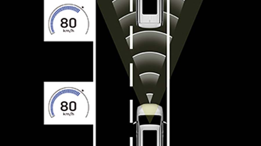Hệ thống sử dụng radar gắn dưới lưới tản nhiệt cùng với camera gắn trên kính lái để phát hiện các phương tiện phía trước, đồng thời tự động điều chỉnh tốc độ để đảm bảo khoảng cách an toàn với các phương tiện đang lưu thông.