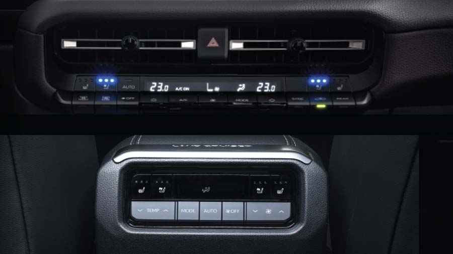 Với 2 bảng điều khiển ở hàng ghế trước và sau, cho phép điều chỉnh 3 vùng không khí độc lập giúp nâng cao sự tiện nghi và thoải mái cho mọi hành khách.